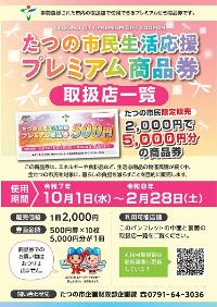 全市民対象!「たつの市民生活応援プレミアム商品券」を10月1日から販売します