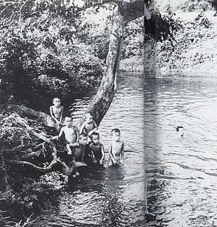 昔は、揖保川や栗栖川の大きな川に行かなくても、家の近くに水浴びができるような小川や池がありました。この写真は、東栗栖小学校横の梅ヶ坪池です。現在も跡が残っていますが、水はありません。