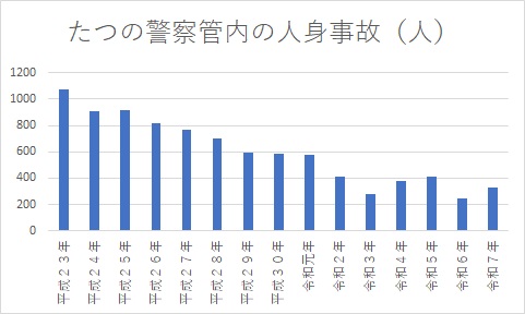 たつの警察署管内の人身事故件数 (JPEG: 39.2KB)